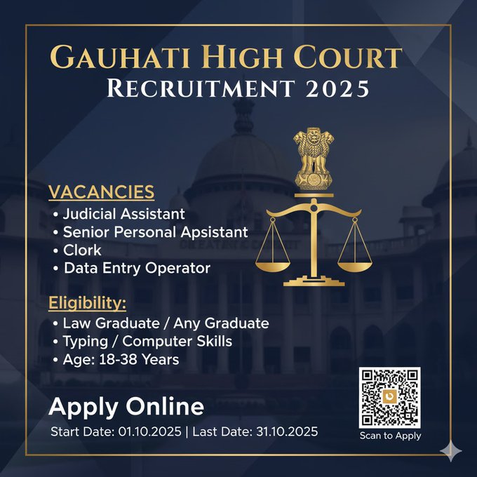 Gauhati High Court invites online applications for 1 post of Junior Grade Translator in the Principal Seat